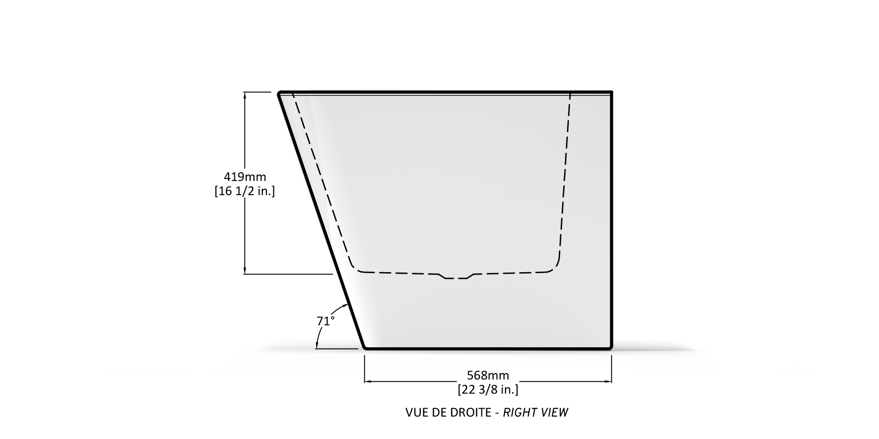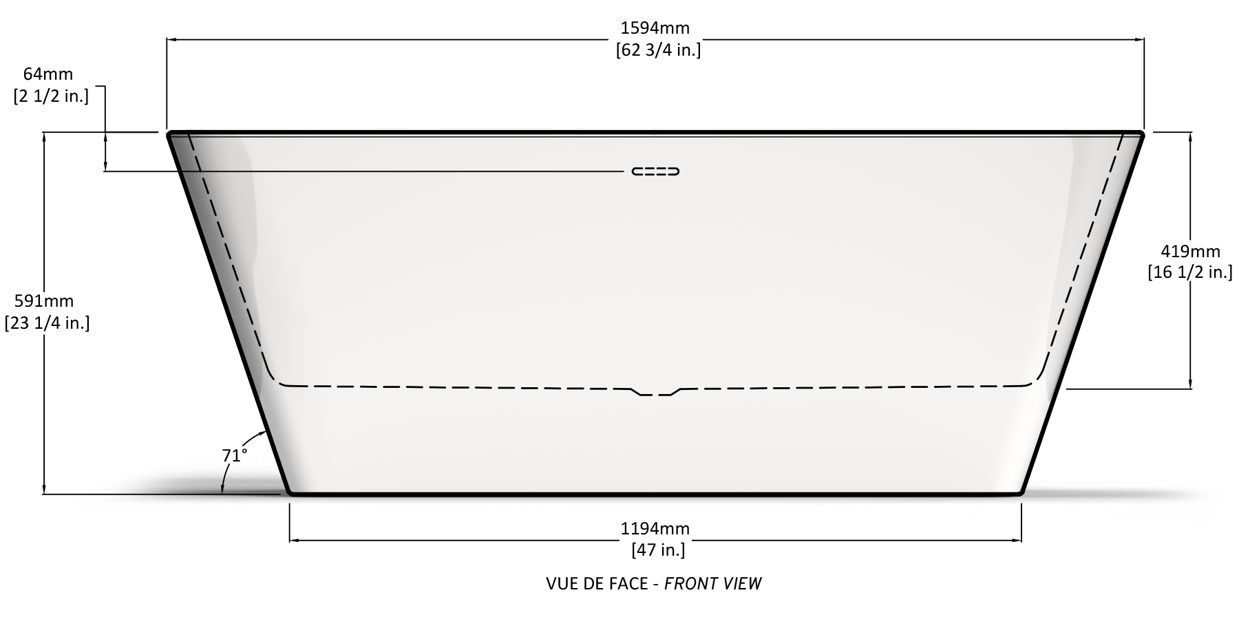 | Hauteur du trop-plein : 14 po. (356 mm) | |