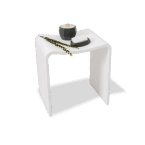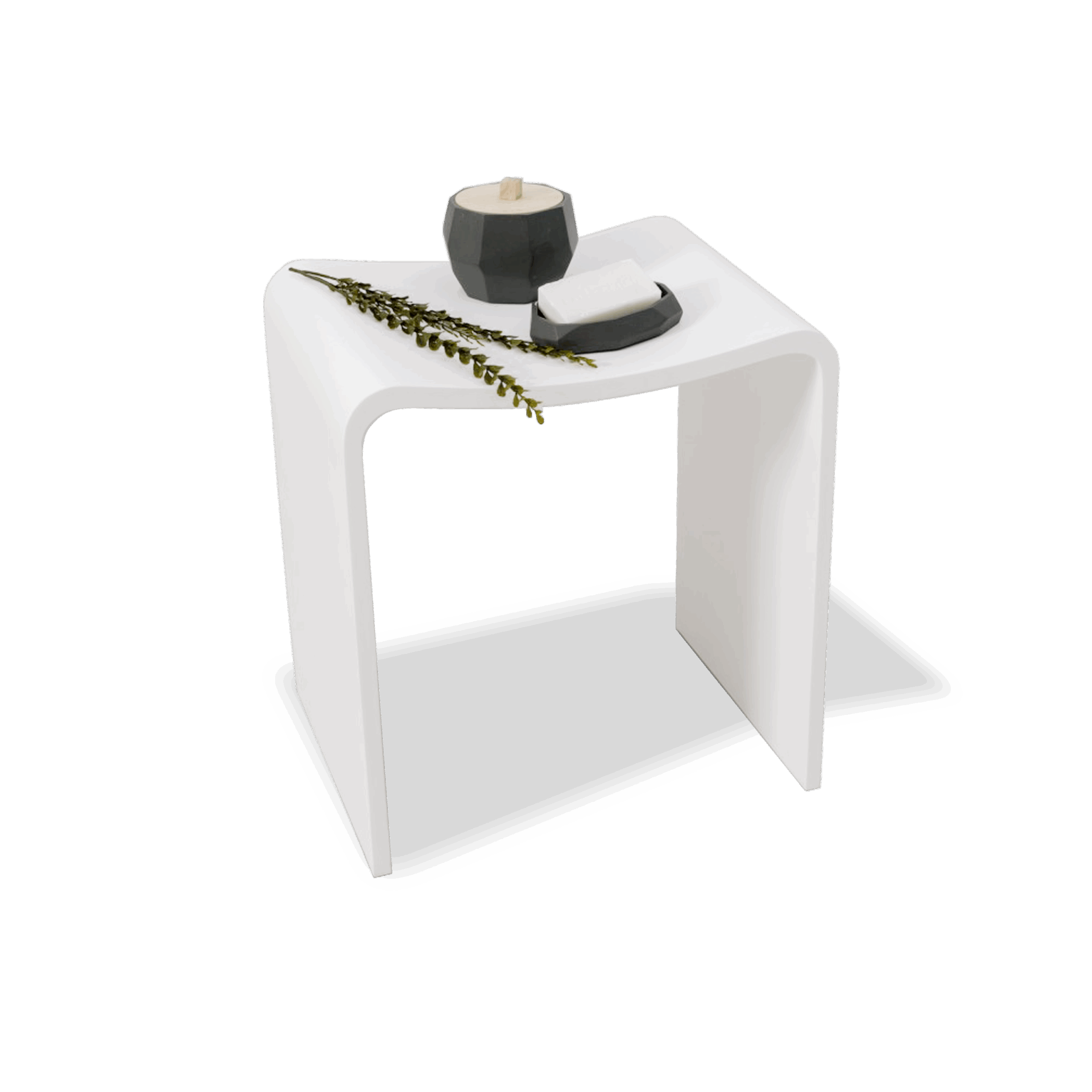 Banc de douche 16’’ aux rebords minces spécifiquement conçu pour la salle de bain. Naturellement conçu d’une surface blanche non-poreuse, le banc est aussi disponible avec une finition appliquée noir mat ou blanche lustrée.