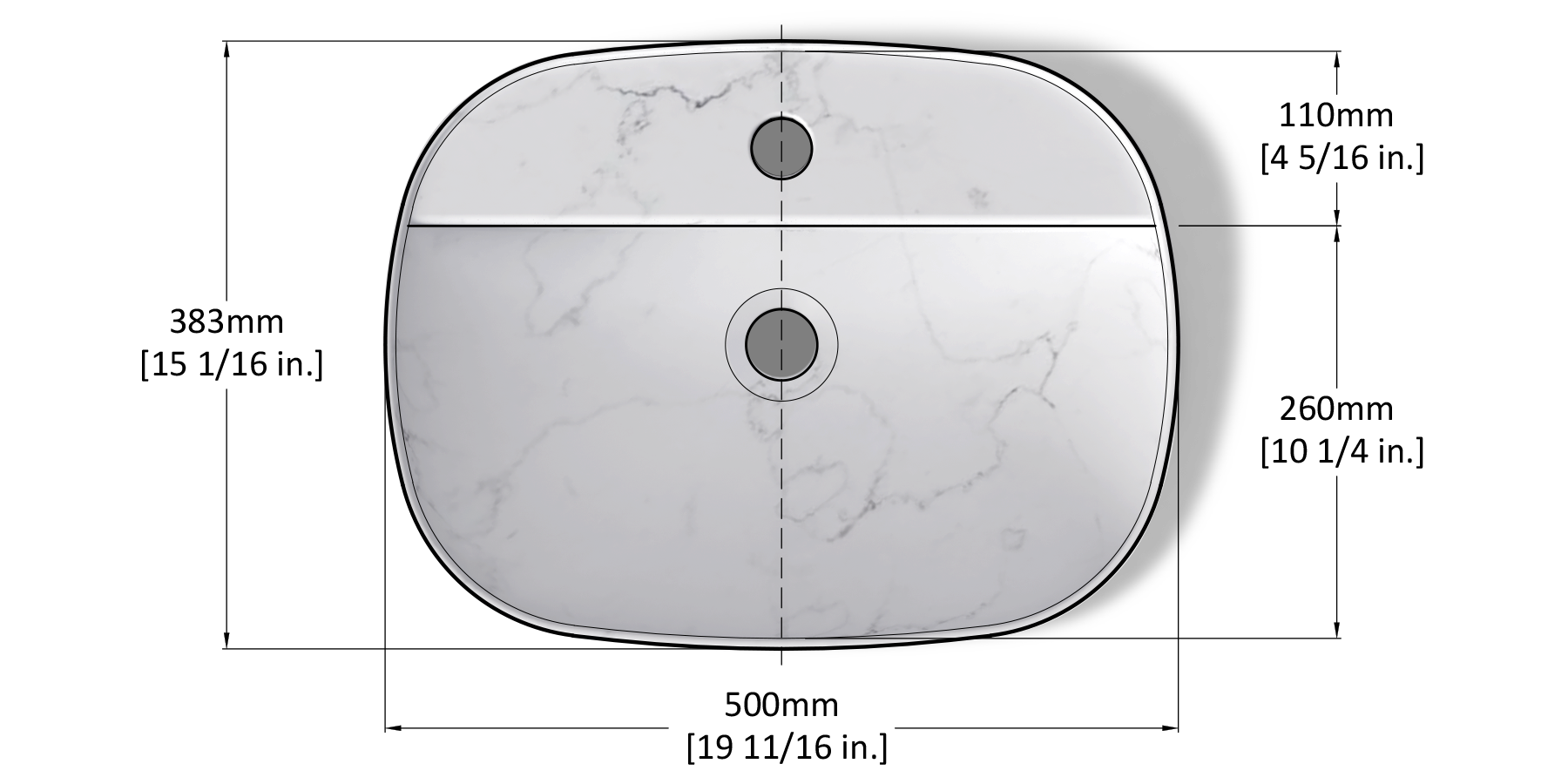 Lavabo de type vasque, sans trop-plein avec plage pour l’installation d’un robinet monotrou. Les finitions d’apparence marbre de la série CLASSICO sont réalisées à la main, par transfert sur la surface créant ainsi une apparence unique pour chacun des lavabos en fabrication.